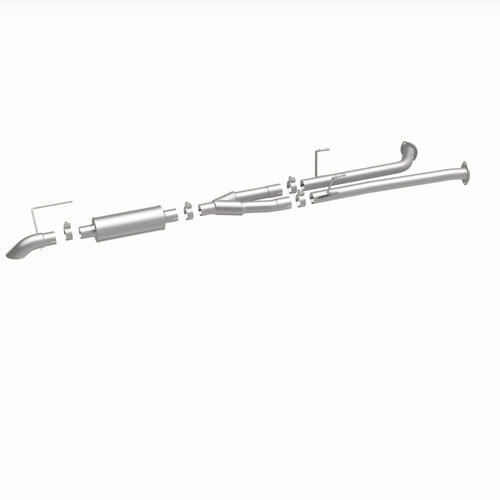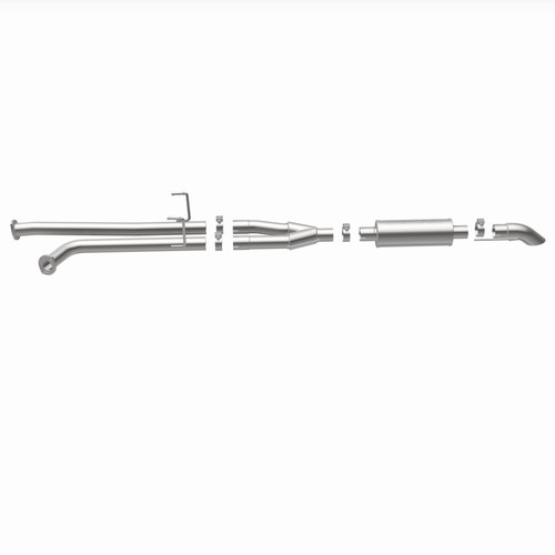 The MagnaFlow 2007-2008 Toyota Tundra Off-Road Pro Series Cat-Back Performance Exhaust System 17112 brings additional off-roading prowess and our deep signature exhaust note to your 5.7L 2007-2008 Toyota Tundra with a weight-optimized, dyno-tested, corrosion resistant and durable stainless steel design engineered to closely hug the undercarriage for improved ground clearance. Exhaust kit 17112 is engineered to produce Very Aggressive exterior and Aggressive interior sound levels. Extensive 3D scanning was used during the development of this Toyota Tundra exhaust system to create a direct-fit design, enabling a do-it-yourself installation process. 17112's emissions-legal cat-back design replaces all your truck's exhaust components from the catalytic converter on back with its 2.5in. diameter mandrel bent main piping that passes through 1 Straight-Through mufflers before ending in a turndown before rear axle exit with 3in. Satin Clamp-On Single Wall Turndown Cut Edge tips. Exhaust system 17112 is produced using advanced CNC precision robotic manufacturing techniques and backed by MagnaFlow's limited lifetime warranty.