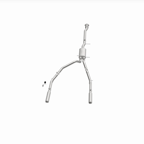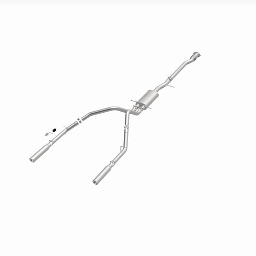 The MagnaFlow Street Series Cat-Back Performance Exhaust System 16741 brings out the personality of your Truck with our signature resonant, powerful engine tone and dyno-proven performance. Thanks to its fast-flowing, mandrel bent 3in. main piping and 1 Straight-Through mufflers ending in a Dual Split Rear exit with 3.5in. Polished Clamp-On Single Wall Angle Cut Rolled Edge tips, this Truck exhaust kit has the performance chops to match its sporty sound and appearance. Upgrade your ride to the next level with an exhaust that has the pipes to put other Truck's to shame. With this system your vehicle will be producing Aggressive exterior and Moderate interior sound levels while leaving other cars and trucks feeling envious at every stoplight. Exhaust kit 16741 features a cat-back layout that replaces your ride's stock exhaust components from near the catalytic converter on back. Extensive 3D scanning during development has resulted in a direct-fit design that you can easily install yourself. 16741 is produced using CNC precision robotic manufacturing techniques and is backed by MagnaFlow's 1-year limited finish warranty and limited lifetime construction warranty.