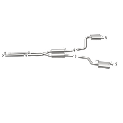 The MagnaFlow 2009-2014 Dodge Challenger Street Series Cat-Back Performance Exhaust System 16514 brings out the personality of your 5.7L 2009-2014 Dodge Challenger with our signature resonant, powerful engine tone and dyno-proven performance. Thanks to its fast-flowing, mandrel bent 2.5in. main piping and 4 Straight-Through mufflers ending in a Dual Split Rear exit, this Dodge Challenger exhaust kit has the performance chops to match its sporty sound and appearance. Upgrade your ride to the next level with an exhaust that has the pipes to put other Dodge Challenger's to shame. With this system your vehicle will be producing Moderate exterior and Mild interior sound levels while leaving other cars and trucks feeling envious at every stoplight. Exhaust kit 16514 features a cat-back layout that replaces your ride's stock exhaust components from near the catalytic converter on back. Extensive 3D scanning during development has resulted in a direct-fit design that you can easily install yourself. 16514 is produced using CNC precision robotic manufacturing techniques and is backed by MagnaFlow's 1-year limited finish warranty and limited lifetime construction warranty.