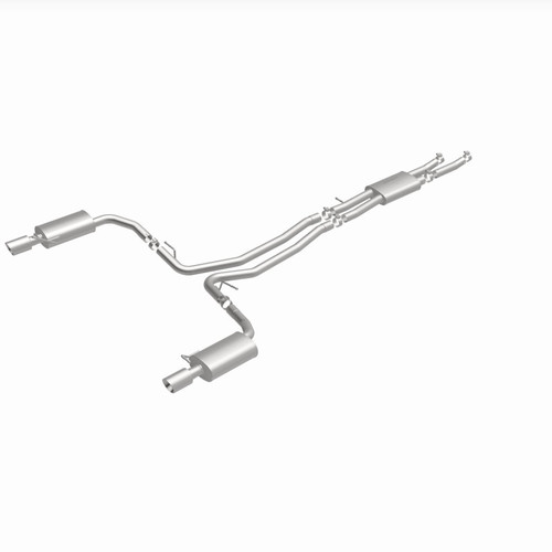 The MagnaFlow 2010-2014 Ford Taurus Street Series Cat-Back Performance Exhaust System 15769 brings out the personality of your 3.5L 2010-2014 Ford Taurus with our signature resonant, powerful engine tone and dyno-proven performance. Thanks to its fast-flowing, mandrel bent 2.5in. main piping and 3 Straight-Through mufflers ending in a Dual Split Rear exit with 4in. Polished Welded-On Double Wall Angle Cut Folded Edge tips, this Ford Taurus exhaust kit has the performance chops to match its sporty sound and appearance. Upgrade your ride to the next level with an exhaust that has the pipes to put other Ford Taurus's to shame. With this system your vehicle will be producing Moderate exterior and Mild interior sound levels while leaving other cars and trucks feeling envious at every stoplight. Exhaust kit 15769 features a cat-back layout that replaces your ride's stock exhaust components from near the catalytic converter on back. Extensive 3D scanning during development has resulted in a direct-fit design that you can easily install yourself. 15769 is produced using CNC precision robotic manufacturing techniques and is backed by MagnaFlow's 1-year limited finish warranty and limited lifetime construction warranty.