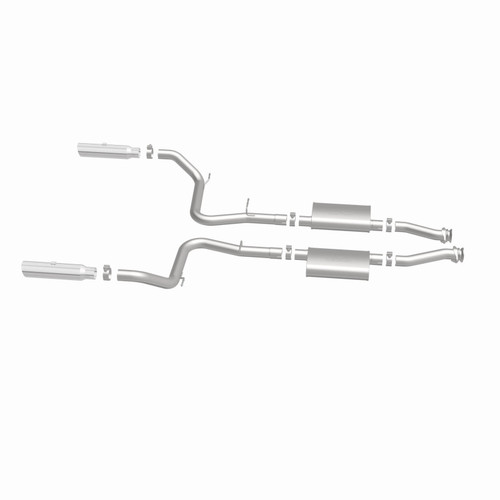 The MagnaFlow 1999-2004 Ford Mustang Street Series Cat-Back Performance Exhaust System 15644 brings out the personality of your 4.6L 1999-2004 Ford Mustang with our signature resonant, powerful engine tone and dyno-proven performance. Thanks to its fast-flowing, mandrel bent 2.5in. main piping and 2 Straight-Through mufflers ending in a Dual Split Rear exit with 3.5in. Polished Clamp-On Single Wall Angle Cut Cut Edge tips, this Ford Mustang exhaust kit has the performance chops to match its sporty sound and appearance. Upgrade your ride to the next level with an exhaust that has the pipes to put other Ford Mustang's to shame. With this system your vehicle will be producing Moderate exterior and Mild interior sound levels while leaving other cars and trucks feeling envious at every stoplight. Exhaust kit 15644 features a cat-back layout that replaces your ride's stock exhaust components from near the catalytic converter on back. Extensive 3D scanning during development has resulted in a direct-fit design that you can easily install yourself. 15644 is produced using CNC precision robotic manufacturing techniques and is backed by MagnaFlow's 1-year limited finish warranty and limited lifetime construction warranty.