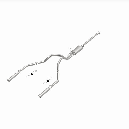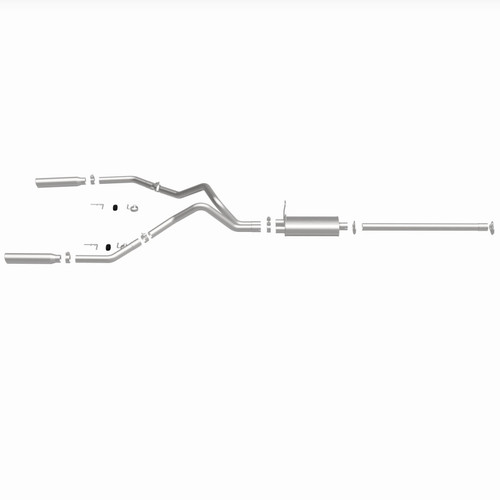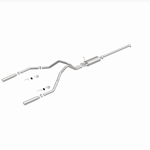 The MagnaFlow Street Series Cat-Back Performance Exhaust System 15749 brings out the personality of your 4.6L, 5.4L 1997-2004 Ford with our signature resonant, powerful engine tone and dyno-proven performance. Thanks to its fast-flowing, mandrel bent 2.5in. main piping and 1 Straight-Through mufflers ending in a Dual Split Rear exit with 3.5in. Polished Clamp-On Single Wall Angle Cut Rolled Edge tips, this Ford exhaust kit has the performance chops to match its sporty sound and appearance. Upgrade your ride to the next level with an exhaust that has the pipes to put other Ford's to shame. With this system your vehicle will be producing Aggressive exterior and Moderate interior sound levels while leaving other cars and trucks feeling envious at every stoplight. Exhaust kit 15749 features a cat-back layout that replaces your ride's stock exhaust components from near the catalytic converter on back. Extensive 3D scanning during development has resulted in a direct-fit design that you can easily install yourself. 15749 is produced using CNC precision robotic manufacturing techniques and is backed by MagnaFlow's 1-year limited finish warranty and limited lifetime construction warranty.