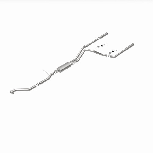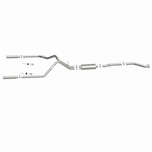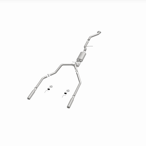 The MagnaFlow Street Series Cat-Back Performance Exhaust System 15754 brings out the personality of your Truck with our signature resonant, powerful engine tone and dyno-proven performance. Thanks to its fast-flowing, mandrel bent 3in. main piping and 1 Straight-Through mufflers ending in a Dual Split Rear exit with 3.5in. Polished Clamp-On Single Wall Angle Cut Rolled Edge tips, this Truck exhaust kit has the performance chops to match its sporty sound and appearance. Upgrade your ride to the next level with an exhaust that has the pipes to put other Truck's to shame. With this system your vehicle will be producing Aggressive exterior and Moderate interior sound levels while leaving other cars and trucks feeling envious at every stoplight. Exhaust kit 15754 features a cat-back layout that replaces your ride's stock exhaust components from near the catalytic converter on back. Extensive 3D scanning during development has resulted in a direct-fit design that you can easily install yourself. 15754 is produced using CNC precision robotic manufacturing techniques and is backed by MagnaFlow's 1-year limited finish warranty and limited lifetime construction warranty.