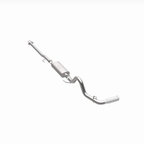 The MagnaFlow 2013-2015 Toyota Tacoma Street Series Cat-Back Performance Exhaust System 15315 brings out the personality of your 4.0L 2013-2015 Toyota Tacoma with our signature resonant, powerful engine tone and dyno-proven performance. Thanks to its fast-flowing, mandrel bent 3in. main piping and 1 Straight-Through mufflers ending in a Single Passenger Side Rear exit with 4in. Polished Welded-On Double Wall Angle Cut Rolled Edge tips, this Toyota Tacoma exhaust kit has the performance chops to match its sporty sound and appearance. Upgrade your ride to the next level with an exhaust that has the pipes to put other Toyota Tacoma's to shame. With this system your vehicle will be producing Moderate exterior and Mild interior sound levels while leaving other cars and trucks feeling envious at every stoplight. Exhaust kit 15315 features a cat-back layout that replaces your ride's stock exhaust components from near the catalytic converter on back. Extensive 3D scanning during development has resulted in a direct-fit design that you can easily install yourself. 15315 is produced using CNC precision robotic manufacturing techniques and is backed by MagnaFlow's 1-year limited finish warranty and limited lifetime construction warranty.
