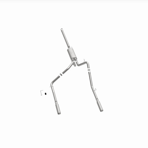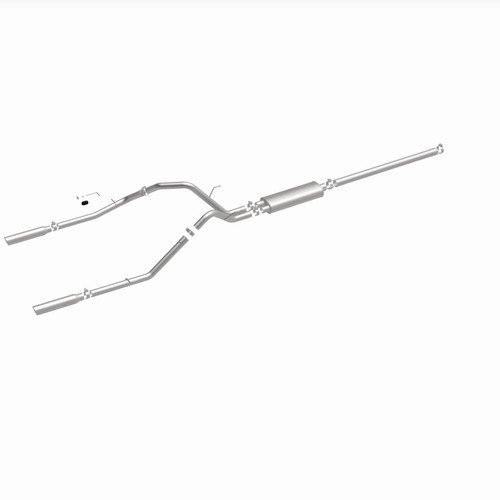 The MagnaFlow 2006-2007 Dodge Ram 1500 Street Series Cat-Back Performance Exhaust System 16700 brings out the personality of your 5.7L 2006-2007 Dodge Ram 1500 with our signature resonant, powerful engine tone and dyno-proven performance. Thanks to its fast-flowing, mandrel bent 3in. main piping and 1 Straight-Through mufflers ending in a Dual Split Rear exit with 3.5in. Polished Clamp-On Single Wall Angle Cut Rolled Edge tips, this Dodge Ram 1500 exhaust kit has the performance chops to match its sporty sound and appearance. Upgrade your ride to the next level with an exhaust that has the pipes to put other Dodge Ram 1500's to shame. With this system your vehicle will be producing Aggressive exterior and Moderate interior sound levels while leaving other cars and trucks feeling envious at every stoplight. Exhaust kit 16700 features a cat-back layout that replaces your ride's stock exhaust components from near the catalytic converter on back. Extensive 3D scanning during development has resulted in a direct-fit design that you can easily install yourself. 16700 is produced using CNC precision robotic manufacturing techniques and is backed by MagnaFlow's 1-year limited finish warranty and limited lifetime construction warranty.