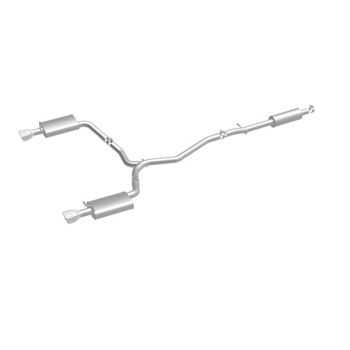 The MagnaFlow 2013-2019 Ford Taurus Street Series Cat-Back Performance Exhaust System 19111 brings out the personality of your 3.5L 2013-2019 Ford Taurus with our signature resonant, powerful engine tone and dyno-proven performance. Thanks to its fast-flowing, mandrel bent 2.5in. main piping and 3 Straight-Through mufflers ending in a Dual Split Rear exit with 4.5in. Polished Welded-On Double Wall Angle Cut Folded Edge tips, this Ford Taurus exhaust kit has the performance chops to match its sporty sound and appearance. Upgrade your ride to the next level with an exhaust that has the pipes to put other Ford Taurus's to shame. With this system your vehicle will be producing Moderate exterior and Mild interior sound levels while leaving other cars and trucks feeling envious at every stoplight. Exhaust kit 19111 features a cat-back layout that replaces your ride's stock exhaust components from near the catalytic converter on back. Extensive 3D scanning during development has resulted in a direct-fit design that you can easily install yourself. 19111 is produced using CNC precision robotic manufacturing techniques and is backed by MagnaFlow's 1-year limited finish warranty and limited lifetime construction warranty.
