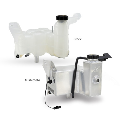 The factory expansion tank on your 2019+ Ram 6.7L Cummins is a weak point in an otherwise durable cooling system. Made from plastic, the stock tank becomes brittle over time and is prone to cracking, discoloration, and internal degradation after thousands of heat cycles. Mishimoto’s aluminum expansion tank is built to solve that problem before it starts. Its TIG-welded construction holds up under high temperatures and heavy use, while internal baffles prevent coolant starvation and reduce the risk of air pockets that can harm engine cooling.--To make installation simple, this expansion tank fits directly in place of the factory unit and does not require draining the entire cooling system. No specialty tools are needed, and all necessary provisions for factory sensors are included. That includes an OEM-style level sensor that allows the truck’s stock low coolant warning system to function exactly as intended.--Beyond durability and ease of install, this expansion tank gives your engine bay a cleaner, more finished look. The Mishimoto expansion tank is available in either micro-wrinkle black or a natural finish, for easy customization through powder-coating, anodizing, or hydro-dipping. It replaces the aging plastic tank with something built to last and designed to look good doing it.--Like all of our products, this expansion tank is backed by the Mishimoto Lifetime Warranty.