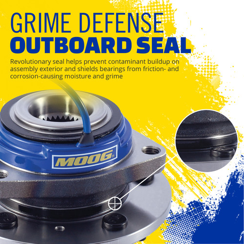 GRIME DEFENSE OUTBOARD SEAL -- Revolutionary seal helps prevent water, dirt and road grime from building up on assembly exterior and shields bearings from friction- and corrosion-causing moisture and grime