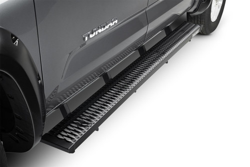 The Growler running board provides a clean yet aggressive look your vehicle. The Sure Grip tread design allows for ultimate traction in any condition. All aluminum construction with modular steel brackets offers long lasting durability and strength for all of your vehicle needs. Bolt-on brackets make installation quick and easy. This is a convenient option for work truck and fleet solutions.