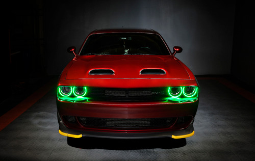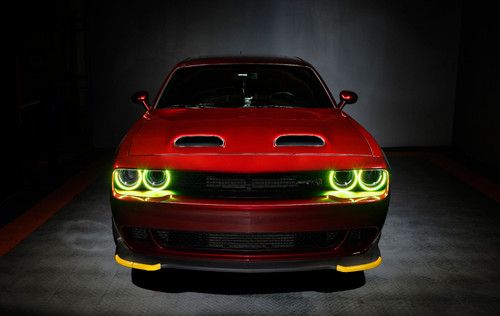 Customize your headlight to the max with dynamic styling and a simple, easy install! The ORACLE Lighting Dynamic ColorSHIFT(tm) halo kit for the 2015-2021 Dodge Challenger features our expertly-crafted surface-mount waterproof design and our Dynamic ColorSHIFT(tm) technology for brilliant chasing colors with the best quality LED components. Encased in a special polymer resin, our surface mount halos are completely waterproof (meaning they can function properly even when submerged underwater), and they easily install by attaching directly to the exterior of the headlight lens using a patent-pending system. We also use advanced LED chips that produce an impressively bright output while consuming less power. This simple process cuts down installation time from hours to just minutes! No removing the headlights, no baking the lights, no cutting the lights! The latest advancement in our expansive lighting modifications, our Dynamic ColorSHIFT(tm) technology allows the user to run multi-color moving patterns. Conveniently controlled through a free smartphone app, the system features over 200 pre-programmed moving patterns as well as static color control and white mode for normal street driving. In addition to the pre-programmed features, the user can also create custom designs through pixel editing in the app. These vividly eye-catching lighting effects are sure to wow any car enthusiast, and the chasing RGB halos are made stress-free by our surface-mount installation and plug-and-play wiring. Connect the ring terminals to the + and - battery terminals, then control your lights with the smartphone app from the included Dynamic ColorSHIFT(tm) controller. Using the latest lighting technology, our cutting-edge halo kits for cars are a great way to personalize your ride with show-stopping looks and industry-leading performance. Stand out from the look-alikes with an ORACLE Lighting halo kit!