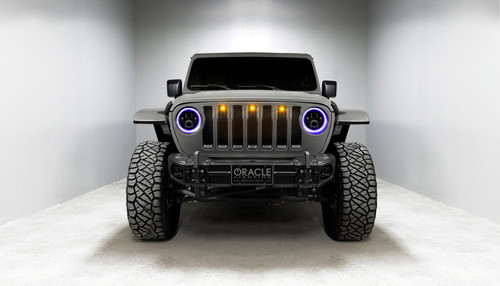 Complete Package for adding High-Performance 7" LED Headlights to your Wrangler JL/Gladiator JT without any fabrication or cutting your factory wiring. This complete Plug-&-Play kit also features Vertical and Horizontal headlight adjustment so you can put the light on the road (where you need it) and not blind oncoming traffic. The Ultimate 7" LED replacement headlight option for the Wrangler JL/Gladiator JT. This rugged solid-state LED design is perfect for the Jeep owner looking for high-quality lighting for better night time visibility without overpaying. Installation is very easy with the included JL/JT-specific “Plug and Play” connectors. You can even choose optional colored Halos for even more customization! Note: DRL wire cannot be used as a power source - Tapping into Park Lights will give manual control over LED accessory during daytime driving - LED accessory will turn on automatically in night mode when switch is set to AUTO - For full automatic control over the LED accessory use fuse F52 in the engine compartment fuse panel. The new ORACLE Lighting Dynamic ColorSHIFT Halos feature individually addressable LEDs which pack a ton of unique features.. The Dynamic features allow the user to run multiple moving color patterns through the LEDs, creating a vivid eye-catching lighting effect.Through the App you can easily make standard white colors as well as any static colors using the LED color wheel. What makes these DYNAMIC halos more unique is that you can also display a variety of moving patterns within the app. With over 200 different patterns there is something to fit every color scheme you can imagine!