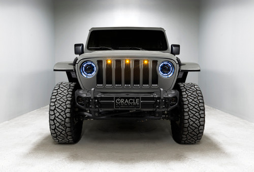 The Popular Oculus Bi-LED Headlights by ORACLE Lighting are now available in a ColorSHIFT(tm) RGB+W Color-Changing version. Oculus Headlights feature advanced focused LED projection that outshines all the competition (including the factory LED headlights). With 4,800 Lumens of high-quality Bi-LED projection, these headlights provide enhanced driver visibility in all weather conditions. Light focus is very important for driver safety and for others who can have their vision obstructed by glare. We are proud to offer the most focused & lowest-glare LED Headlights for the JL and JT on the market. Each LED feature has a separate cable output and can be connected together so all 3 create the same color or set up as 3 separate Channels or zones depending on the user preference and the ColorSHIFT(tm) controller selected. Please note that these features are intended for off-road show use only and are not compliant for street use. The Pure-White DRL has its own wiring harness (same as the original Oculus) that connects to the fuse box with an add-a-circuit for easy and safe integration. The DRL will come on when the engine is running or can be connected to a switch (including the factory Aux switches) for additional user control.