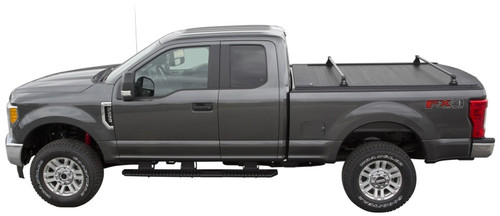 UltraGroove Metal(TM) is a retractable tonneau that makes it easy to attach nearly any Thule(R) or Yakima(R) rack to carry bikes, kayaks, cargo baskets and more. It offers truck owners the metal look with heavy-gauge aluminum panels and a tough, powder-coated, matte-black surface. With or without racks, UltraGroove Metal is a great-looking retractable tonneau that's incredibly easy to use. It opens quickly with just a turn of the lock knob and closes just as easily with a pull on the built-in strap. ' The built-in RES(TM) rail expansion system can quickly be outfitted with racks to carry your recreational gear.