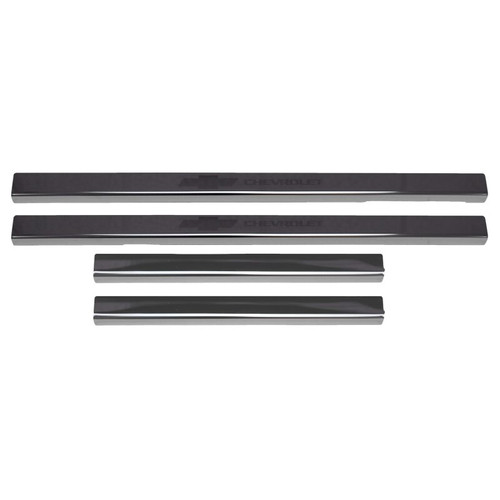 Upgrade the entryway of your Silverado and protect it from damage at the same time! These Door guards are GM Licensed and laser etched to perfection with the "Chevrolet + Bowtie" Logo. Each trim piece is constructed out of polished T-304 stainless steel, giving them a black mirror-like finish. Each set of door sills is custom-made for your truck’s year model and cab size for a perfect fit. Unlike other brands, our door sills are installed in seconds with authentic automotive grade 3M tape, guaranteed to last the lifetime of your truck, installation is easy... simply peel and stick! all of our stainless steel door sills are backed by our NeveRust Limited Lifetime Warranty and designed and manufactured in the USA by Putco Inc. in Des Moines, IA.