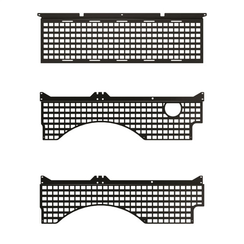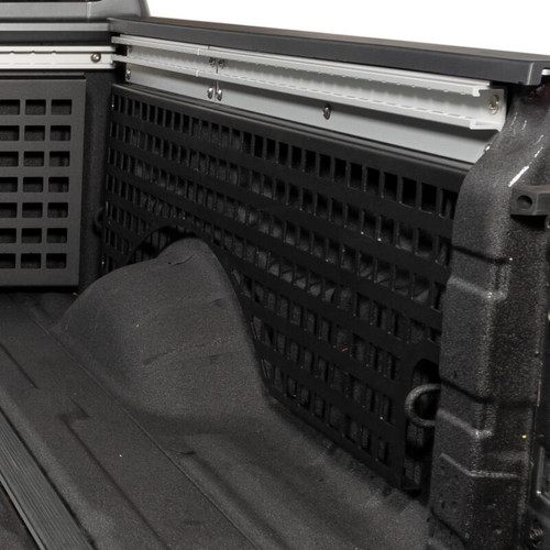 Secure your cargo in the back of your truck bed with this next level one of a kind truck bed storage organizing system. New from Putco are the Molle Panel inside truck bed panels system. This amazing cargo storage system is perfect for latching down nearly anything you want to secure in place like Molle bag, trail gear, construction gear, jacks, or anything your heart desires. Available for the bulkhead, side bed and tailgate area. Choose from getting the entire set or just getting one side. Great for Overlanding pickup trucks or work trucks to hang and organize gear, tools and more. These truck bedside organizers called molle panels are great for storing your gear and organizing your truck bed whether you use your pickup for work or play. Plus the are a must-have for the overland truck for your next outdoor adventure.Constructed out of durable CNC cut 10 gauge aluminum that is finished with a mini-textured black powder-coat. This American made panel system works with most industry-leading mounting accessories like Quickfist, Kolpin, Molle, and much more. Also, this come is compatible with most soft roll-up and hard fold cover on the market.Installing a Molle panel is simple with no drilling or cutting of any kind and its custom design for your year, make and model allows you to use your OEM tie-down area and other standard OEM features of your truck. Each panel is backed by a three-year warranty. So if you are tired of your cargo rolling around and want it secured in place the Putco Molle Panels are for you.
