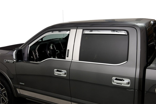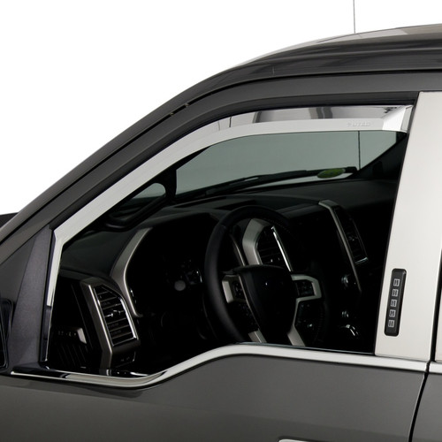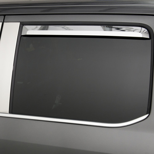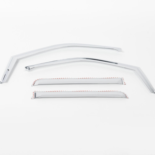 Enhance your truck or SUV with the exceptional Putco Element Chrome Window Deflectors. Crafted from a combination of durable and lightweight materials, these deflectors offer a sleek and eye-catching chrome finish that elevates the exterior aesthetics of your vehicle.Experience the perfect balance of functionality and style with these in-channel window deflectors. They enable the circulation of fresh air within your vehicle, ensuring a comfortable and refreshing atmosphere while effectively keeping rain, wind, and other weather elements at bay. Additionally, their innovative design minimizes wind noise, providing you with a serene driving experience.Versatility is a key feature of the Putco Element Chrome Window Deflectors. With their precisely engineered construction, they effortlessly accommodate a wide range of trucks, SUVs, and cars, ensuring a seamless fit on various vehicle models. Moreover, installing them is a breeze!, thanks to the convenient pre-applied 3M automotive tape that allows for a quick and hassle-free installation process.Upgrade with the best-in-class window deflectors with the Putco Element Chrome Window Visors and enjoy the perfect combination of enhanced aesthetics, improved ventilation, and reduced wind noise!