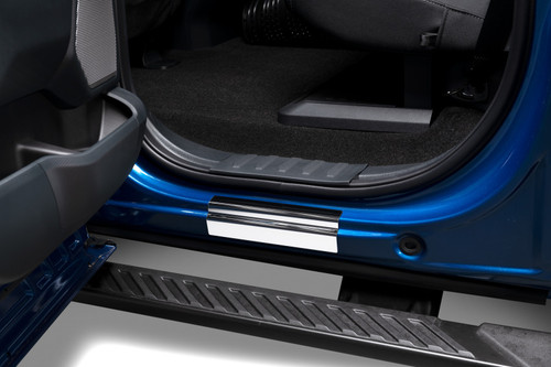 Enhance your Ford's appearance with a touch of premium elegance using these Officially Licensed Door sills. These meticulously crafted door sill trim plates are constructed from high-quality polished T-304 stainless steel, delivering a stunning mirror-like finish that adds a luxurious touch to your vehicle.Featuring Laser-etched logos like Super Duty, Ranger, F-150, Maverick, or Bronco, Custom-crafted to flawlessly fits your Ford, these door sills seamlessly integrate, giving your vehicle the high-end, expensive appearance that it deserves.The Installation is a breeze, thanks to the pre-applied automotive-grade 3M tape. Simply peel, align, and stick! Since each product is designed and manufactured in the USA, they are backed by the NeveRust limited lifetime warranty, guaranteeing exceptional durability and long-lasting performance.Protect your Ford's door sill from potential damage while enhancing its overall aesthetic appeal by adding a touch of refinement that your Ford deserves!
