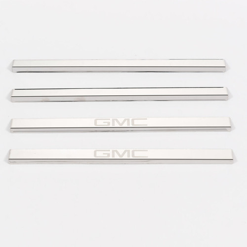 Protect your door sill from damage in style with the Putco GM Licensed Stainless Steel Door Sill Plates. These quality trim pieces are constructed out of polished T-304 stainless steel, giving them a mirror-like finish. Putco has gone above and beyond and added the GMC logo to the door sill plate via Laser Etch. Each set of door sills are custom made for your truck's year, make, and model for a perfect fit.Every Putco stainless steel door sill plate is backed by a Limited Lifetime Warranty against rust and made right here in the good ol' United States (Des Moines, IA). So, if you are looking to give your truck a little more protection from rocks and other debris, then the Putco GM-licensed stainless steel door sill plates are perfect for you.