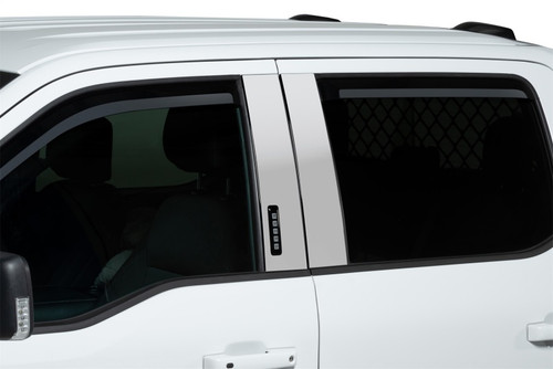 Enhance your truck or SUV with the exceptional Putco Element Chrome Window Deflectors. Crafted from a combination of durable and lightweight materials, these deflectors offer a sleek and eye-catching chrome finish that elevates the exterior aesthetics of your vehicle.Experience the perfect balance of functionality and style with these in-channel window deflectors. They enable the circulation of fresh air within your vehicle, ensuring a comfortable and refreshing atmosphere while effectively keeping rain, wind, and other weather elements at bay. Additionally, their innovative design minimizes wind noise, providing you with a serene driving experience.Versatility is a key feature of the Putco Element Chrome Window Deflectors. With their precisely engineered construction, they effortlessly accommodate a wide range of trucks, SUVs, and cars, ensuring a seamless fit on various vehicle models. Moreover, installing them is a breeze!, thanks to the convenient pre-applied 3M automotive tape that allows for a quick and hassle-free installation process.Upgrade with the best-in-class window deflectors with the Putco Element Chrome Window Visors and enjoy the perfect combination of enhanced aesthetics, improved ventilation, and reduced wind noise!