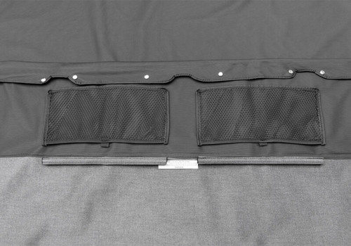 Own the trail with this exclusive truck look that combines the easy fold back features of a TrailView Soft Top with the gear protecting coverage of a durable snug fit tonneau cover. Rain tight rear curtain includes oversize rear window and two side windows for better visibility. The tonneau cover can be zipped into the rear curtain and can be easily removed. Includes door surrounds, fold-back hardware and tailgate bar.