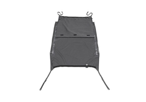 The Rampage Frameless Trail Top installs over the original equipment factory roll bar for a snug fit. This unique design allows for larger side windows and improved visibility with removable side and rear windows that quickly convert the soft top into an open Safari top. Windows use heavy duty molded tooth zippers and are easily replaced or removed. The windows are also stored in a special separation panel between the ceiling and roof top which is concealed to protect the windows from scratches or puncture. The fastback style offers improved aerodynamics and a quieter ride than factory bow style tops. The windshield channel, door surrounds and tail gate bar are required. These can be purchased separately.
