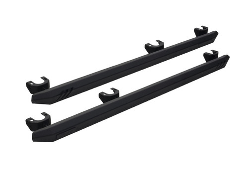 Finally, a rock guard solution that looks as great on the road as it does off the road! The Rampage Rock Rail is a modular system that offers Jeep owners a choice of a double or single step rail that can quickly be removed, leaving the rock rail base to protect the truck body when hitting the trails. The revolutionary modular Rock Rail system is constructed of fully welded 3mm thick mild steel with a heavy-textured black powder-coated finish. Protect your Jeep body from on road and off road rocks and debris, with the Rampage Rock Rail system.