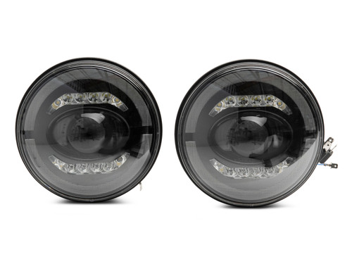 A pair of Axial LED Headlights is an excellent way to add modern styling to your 2007-2018 JK Wrangler. These Projector style Headlights feature LED halo and accent lights to give your JK an updated appearance. Utilizing a projector lens design, these Axial Headlights will light up the road ahead with a bright focused beam for better nighttime visibility. While the integrated LED halo accents will ensure that you are visible day or night by distracted drivers. Raxiom manufactures its headlights to precise standards from OEM quality materials. These Projector Headlights feature durable, black plastic housings with crystal clear polycarbonate lenses and modern LED accent lighting. Each housing weather is sealed to prevent dirt and moisture from harming the state of the art electronics. Axial designed its Projector Headlights to be a direct plug and play replacement for your Wrangler's original factory housings. There is no cutting or modifications required for a clean, straight forward install. However, it should be noted that you will need to remove the grille in order to gain access to the mounting bolts. These Axial LED Headlights are designed to fit 2007-2018 Jeep Wrangler JK models. Driver and passenger side lights are included.