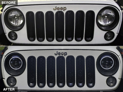 If your Wrangler's stock headlights are cracked, damaged, or yellowing replace them with a brand new set of Raxiom 7-inch Round Halogen Headlights. Designed to be a direct replacement for your factory headlamps, these DOT compliant, Headlights will light up the darkest trails and dimmest highways to ensure that the path ahead is safely lit. These Raxiom Headlights also feature Daytime Running Light (DRL) halo accents that add a cool custom appearance to your Wrangler, while improving your visibility to other drivers. These Raxiom Headlights employee premium, high output LEDs for use in the daytime running light accent halos. These stylish LED halo accents will ensure that you are visible day or night by distracted drivers. Designed to perform in the harshest of elements, these Raxiom Headlights feature a rugged plastic housing with a tough as nails hard coated clear polycarbonate lens. Each Headlight is weather sealed to prevent moisture from harming the state of the art electronics found inside. These Raxiom LED Headlights can take just about anything the trail and mother nature can throw at them. Raxiom designed their 7-inch Round Halogen Headlights to be a direct plug and play replacement for your Wrangler's original factory lights. Installation can be completed in under 30 minutes. It should be noted that the accent halo portion of the headlight will require splicing into your Jeeps running lights for operation. These Raxiom 7-inch Round Halogen Headlights will not only bring a fresh new look to your Wrangler, but they also meet or exceed the strict guidelines set forth by the U.S. Department of Transportation (DOT) and the Society of Automotive Engineers (SAE), making them legal for street use. These Raxiom Lights also feature a dust and waterproof rating of IP 67, which makes them perfect for use on the muddiest of trails.