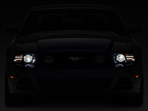 Transform the appearance of your 2013-2014 Mustang's front end by installing a set of Raxiom Projector Headlights. These Projector Style Headlights have an intimidating design that works well with the lines of your S197 Mustang to produce a sleeker appearance. These lights not only look great, but will also help to enhance nighttime visibility when compared to stock. Raxiom designed these Headlights with projector lenses to work in conjunction with your stock HID bulbs to light up the road ahead with a bright focused beam of light that will improve your nighttime visibility. The integrated LED Halo accent lights will give your Mustang a more exotic appearance that will separate it from the boring herd of look-a-likes. Raxiom manufactures its headlights to precise standards from OEM quality materials. These Projector Headlights feature durable, black plastic housings with crystal clear lenses and modern LED accent lighting. Each light is sealed to prevent dirt and moisture from harming the state of the art electronics. Raxiom designed its Projector Headlights to be a direct plug and play replacement for your Mustang's original factory housings reusing the factory HID System. There is no cutting or modifications required for a clean, straight forward install. However, it should be noted that you will need to lower the front fascia in order to gain access to the mounting bolts.
