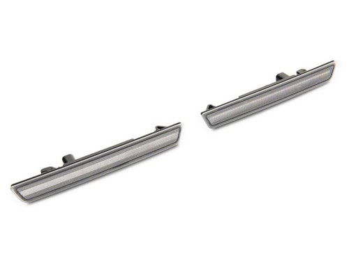 A set of Axial Clear LED Side Marker Lights is a simple and effective way to upgrade the exterior styling of your 2018-2023 widebody Dodge Challenger. These Side Marker Lights feature a razor sharp LED strip that replaces the unsightly hot spot of the factory lights. These Axial Side Marker Lights not only look great, but they are also much brighter than the weak factory incandescent lights for increased visibility day or night. Raxiom manufactures its Side Marker Lights with injected molded ABS plastic housings for durability, and use clear polycarbonate lenses for exotic good looks. These Side Marker employee high output, red (rear) and amber (front) SMD LED strip lighting for super bright illumination. Raxiom ensures that its Side Marker Light housings are weather sealed to prevent dirt and moisture from harming the state of the art electronics found inside. Raxiom designed its LED Side Marker Lights to be a direct plug and play upgrade for your Challenger's original factory lights. There is absolutely no cutting, splicing or resistors required. Just pop out the old factory side markers and disconnect the wiring harness. Plug the harness into the back of your new LED Side Markers and snap them in place of the old ones. It's that simple!