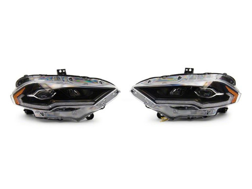 A pair of Black Raxiom LED Projector Headlights are an excellent way to add an updated appearance to your GT or EcoBoost Mustang, all while improving your nighttime visibility. With an impressive integrated sequential turn signal and Daytime Running Light (DRL) design, these Headlights will give your Mustang a whole new look. Utilizing a projector lens design, these Raxiom LED Headlights will light up the road ahead with a bright focused beam for better nighttime visibility. The sequential amber LED turn signals and white LED DRL accents not only look great, but will also ensure that you are visible to distracted drivers day or night. Manufactured from OEM grade materials, these Raxiom Projector Headlights are assembled to precise standards for long-lasting quality. These Projector Headlights feature durable, black ABS plastic housings with clear polycarbonate lenses and modern LED lighting. Each housing is weather-sealed to prevent dirt and moisture from harming the state of the art electronics found inside. These Projector Headlights will not only bring a fresh new look to your Mustang, but they also meet or exceed the strict guidelines set forth by the U.S. Department of Transportation (DOT) and the Society of Automotive Engineers (SAE), making them legal for street use. These Projector Headlights were designed to be a direct plug and play replacement for your Mustang's original factory housings. The sequential turn signal and DRL light bar portion of the headlight will require splicing into your wiring harness with the supplied scotch lock connectors. Please be sure to have your headlights properly aimed/aligned before driving at night. It should be noted that you will need to remove the front fascia in order to gain access to the mounting bolts.