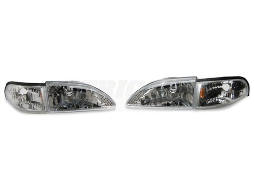 These bright chrome Axial Mustang Headlights feature a two piece housing that fits perfectly in the stock location of any 1994-1998 pony for great classic styling. Now you can improve your night visibility just by replacing your old weathered and worn out stock headlights with a brand new set of crystal clear headlights from AmericanMuscle. Equipped with dual element 9007 bulbs for high/low beams this pair of Axial Mustang Headlights are DOT (Department of Transportation) approved for legal street use under compliance # QR1300002. These Axial Chrome Cobra Style Mustang Headlights are designed to fit the 1994 to 1998 V6, GT, and Cobra model Mustangs. And includes both headlights and both side markers.