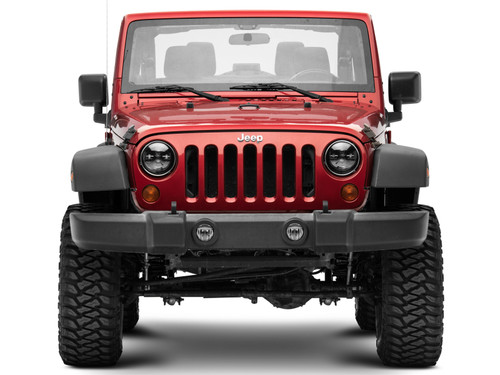 Driving through low visible trails and roads with your 1997-2018 Jeep Wrangler just got much easier with this pair of Axial LED Black Daymaker Headlights. These high-powered, round 7" LED lights come with built-in EMC function for anti-flicker so you won't need an extra decoder to prevent interference from electrical currents. With over a 50,000-hour lifespan, this pair of rugged headlights is made to last while lighting your path. These bright Axial LED Black Daymaker Headlights feature 100% original high-performance CREE LED lamps that put out 3200-4500 raw lumens. Each bulb powered by DC 9-30V is 45 Watts with a 6000K color temperature made to illuminate the dark trails ahead of you. Raxiom designed these Black Daymaker Headlights to handle nearly any type of environment. This pair of IP67 waterproof, shockproof and dustproof headlights are constructed with black durable aluminum housings to prevent moisture, vibration and dust from damaging your electronics. Similar to other plug-and-play lights on the market, these LED Black Daymaker Headlights are made to be an easy replacement for your headlights. No cutting or modifications are needed and installation should take approximately 1 hour to complete. These aftermarket LED Headlights are intended for use with factory halogen headlight equipped models. In order to use these aftermarket LED Headlights on a Jeep that is already factory equipped with LED headlights, you will require a set of factory halogen headlight buckets – not included.
