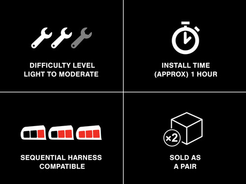 Add the bold iconic styling of the late model Mustang to your New Edge Pony with a set of Raxiom Icon Tail Lights. These tail lights feature built-in modern LED technology that is used for both the reverse lights and running light rings to dramatically transform the appearance of your 1999-2004 Mustang. Raxiom Icon LED Tail Lights are manufactured using state of the art LED electronic components with a simple plug-in connector that easily inserts into the stock wiring (or Raxiom sequential) tail light harness for a simple straight forward installation. The high intensity LED running light rings of these Raxion Icon Tail Lights not only look great, but they also improve your driving safety as they are much brighter than the standard factory incandescent bulbs making sure you are clearly seen at night. These Raxiom Icon LED Tail Lights are designed to work with your existing Raxiom Sequential Tail Light Harness to give your New Edge Pony the high tech styling of the late model Mustangs. If you would like a slower speed for the sequence of your tail lights after you install the optional Sequential Tail Light Harness, to get that modern muscle car styling, combine the Harness with the Raxiom Turn Signal Flasher V1 (For Incandescent Bulbs) or Raxiom Turn Signal Flasher V2 (For LED Bulbs). Raxiom Icon LED Tail Lights not only improve the appearance of your Mustang, but they also meet or exceed the strict guidelines set forth by the U.S. Department of transportation (DOT) making them DOT compliant under compliance# QR1300191. Bulbs are not included. These tail lights reuse the stock bulbs or you can upgrade to Raxiom LED Tail Light Bulbs. Raxiom LED Tail Light Bulbs will require the use of a Raxiom Modified Turn Signal Flasher for proper operation.