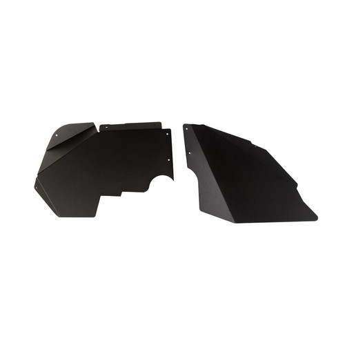 The perfect complement to any off-road fender upgrade is remembering to upgrade those flimsy stock fender liners. Rugged Ridge Aluminum Inner Fenders are a straight-forward and clean way to complete the look of your 07-18 Wrangler JK without breaking the bank. Crafted from lightweight aluminum plate, brake-formed and engineered for a precise fit making it a direct replacement for the front factory liners. With a corrosion-resistant black powder coat finish, they provide an attractive appearance while maintaining effective air flow and protecting your engine compartment from water, dirt and debris. Inner Fenders are compatible with factory and most aftermarket flares and feature a simple bolt-on installation (some drilling and trimming of plastic may be required). Sold in pairs.