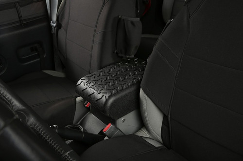 Rugged Ridge's new All-Terrain Center Console Covers are designed to prevent the accelerated wear and tear common to Jeep Wrangler interiors. Unlike cloth and leather consoles, these heavy duty covers will keep your center console in showroom condition for years to come. Molded from durable polyurethane foam, these covers create a heavy duty barrier to protect the vulnerable console from scratches, rips, stains and even damage from harsh pet claws, while also enhancing interior styling with Rugged Ridge's unique tread design. These covers install securely within seconds with the supplied automotive grade adhesive tape. Patent No. D627,285