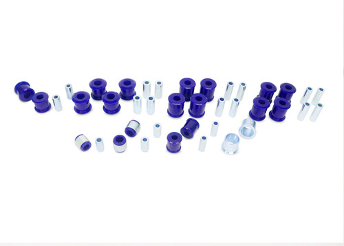 Jeep's JL Wrangler took some big strides in on-road civility and comfort over its JK predecessor but still leaves room for improvement. Loft compliant bushings in the control arms and Panhard/track rods that degrade quickly - even Moreso with off road use and larger wheel/tire packages - contribute significantly to ride quality and the Jeep's composure on road. SuperPro's bushing kit brings a lifetime of maintenance-free durability and superior on-road manners. Drastic reductions in deflection and bushing movement mean a Jeep that tracks straighter, drives more accurately and requires far less constant adjustment and compensation. Whether fitted as a single upgrade or restoration item or as an ideal complement to other suspension upgrades SuperPro helps your Jeep drive as well on the way to and from the trail as it does when the pavement ends. Design features abound to mitigate road and tire noise to keep your Jeep in line with the myriad improvements brought in with the JL generations. These features also permit high levels of articulation so there is ZERO compromise in your Jeep's ultimate capabilities. This kit compliments what the Wrangler does so well - and in ways other SUVs cannot - market-leading offroad capability with enhanced road manners and a lifetime of durable service - all backed by SuperPro's lifetime warranty. Kit includes: SPF3655K - Front Leading Arm Lower Bush Kit SPF3751K - Front Leading Arm Upper Front Bush Kit SPF3654K - Front Leading Arm Upper Rear Bush Kit SPF3661K - Trailing Arm Lower Bush Kit SPF3660K - Trailing Arm Upper Bush Kit SPF5575K - Rear Panhard Rod Bush Kit SPF5581K - Front Panhard Rod To Diff Mount Bush Kit