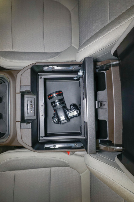 Chevy/GMC owners secure some peace of mind by installing the fully integrated and concealed Tuffy Security Console safe. As part of our ever-expanding line of console safe safes for trucks, the Tuffy Console safe accommodates the OEM USB, SD and AUX ports providing style, security and convenience. The Tuffy Console safe transforms your OEM console into a heavy-duty lockable storage safe using Tuffy’s Pry-Guard locking system with 10 tumbler double bitted security key to help protect valuables from opportunistic thieves. The innovative design uses an exclusive lid support feature that keeps the lid open while sticking your hands inside. Grab something quick on the go without fear of the lid slamming shut on your hand. The safe maintains a completely stock look. Finished with a durable texture powder coat, the Console Safe comes ready to install and lasts a lifetime.