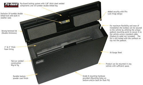 The Tuffy Laptop lockbox is specifically designed to provide a secure and protected place to lock up portable computers. The 1 inch and 2 inch thick foam lining protects the contents from jarring and shifting during transport. Tuffy’s exclusive Pry-Guard locking system provides the high security required to protect expensive computer equipment. The unique design incorporates an exclusive hinging system and welded steel construction. Grade 8 mounting hardware is included with mounting holes provided for bottom or back flush surface mounting so the lockbox can be mounted behind the rear seat in a pickup truck or virtually any other place it can fit. For maximum flexibility and ease of installation the lockbox can be secured to the vehicle by utilizing the unique padlock mounting point to secure it to the vehicle using a standard cable. (Padlock & cable not included) The lid is still locked with the cam lock on top not the padlock. In 2008, the number of reported laptop thefts rose 48 percent over 2007. source – FBI (National Crime Information Center) Aside from the obvious costs of replacing expensive laptop computers, one must also consider the potential exposure of sensitive information and the liability that stolen information creates.
