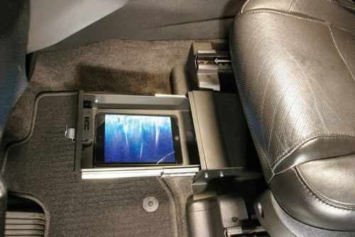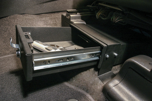 This high security 16 gauge steel security drawer mounts under the drivers or passengers side seat in a Ford Explorer (NOTE: does not fit Explorer Sport or ST models). The formfitting design of the Tuffy lockbox has over 200 cubic inches of lockable storage with no need to reroute under seat wiring harnesses. It's secured contents are easily accessed by maneuvering the drawer open and closed on the smooth ball bearing slides using the convenient pull lever. Featuring Tuffy's Pry-Guard Locking System with a 10 tumbler double bitted security lock with built in weather seals. The design incorporates a heavy duty fully extending slide system, weather seal and welded construction. A formed rib in the enclosure additionally strengthens the locking system. Tuffy's exclusive bolt-blocker bracket is included for additional security. Mounts inconspicuously under the seat out of apparent site of would be thieves.