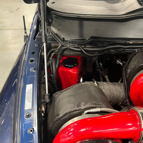2004.5-2007 5.9L Cummins Fabricated Aluminum Coolant Tank Kit, mounts in OEM coolant tank location. Dress up your engine bay by replacing the aging, yellowed plastic coolant reservoir with our custom powder coated fabricated aluminum coolant tank. Includes black anodized CNC machined billet aluminum cap and mounting hardware. Will fit on stock trucks with no other modifications necessary. Uses OEM mounting points Installs with basic hand tools. FITS 2004.5-2007 5.9L Cummins. Not compatible with 2003 or early 2004 Dodge Ram 2500 and 3500 models which have the coolant tank mounted on the radiator core support. Replaces the following MOPAR part numbers: 55056493AA, 55056493AB