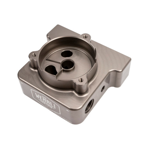 Increase fuel filter capacity and amount of time between filter changes on your 2017-2024 L5P Duramax by upgrading from a stock cartridge style filter to our spin-on canister style filter. Featuring an anodized billet aluminum fuel filter base, this upgrade kit installs in the same location as the stock cartridge filter base using the same OEM style quick disconnect fuel line fittings.