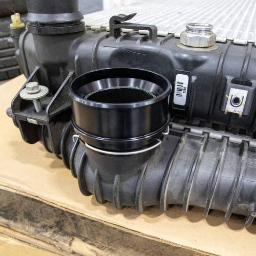 This Billet Aluminum Beadroll Adapter Flange connects to the outlet (passenger / cold) side of the Intercooler. Adapts the OE slip/clip ring assembly to a precision machined bead roll joint allowing you to connect a 3.5" silicone boot/T-bolt clamp to the intercooler for custom intercooler pipe builds. NOTE: This part is designed for use with some aftermarket and custom fabricated high flow intercooler piping and turbo kits which are looking to adapt to the stock style intercooler outlet to a 3.5" silicone boot and bead roll joint.