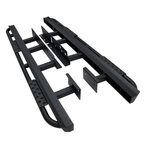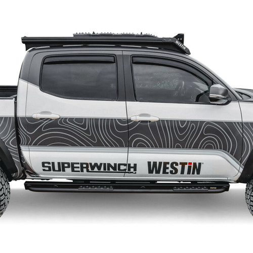 The all-new XTS Rock Sliders from Westin provide outstanding protection from rocks and other trail hazards, and feature a custom profile to match vehicle's contour for enhanced protection and great styling. Westin's XTS Rock Sliders are constructed from 12-gauge steel channel combined with a 1-3/4in. diameter .120in. thick wall round tube for superior durability. The XTS Rock Sliders feature bolt-on step plates with polyurea texture coated grip surfaces for slip resistance. These XTS Rock Sliders are built to last through the use of an electrostatic base coat for superior corrosion resistance in combination with a durable textured black powder coat finish. All XTS Rock Sliders come complete with all necessary hardware to provide a hassle-free installation, while a full 3-Year warranty provides peace of mind.