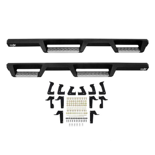 Westin's HDX Stainless Drop Nerf Step Bars are built with corrosion-resistant, textured black painted stainless steel designed to last under the toughest of conditions. With 1-piece construction, these nerf step bars provide over 2 added inches of toe/heel step area than our competitors and fit tight to the vehicle's rocker panel for a solid fit and rugged look. HDX Stainless Drop Nerf Step Bars include stainless steel step pads. Step plates are rust resistant and provide maximum traction. Bolt-on installation with no drilling is required. Includes mount kit.