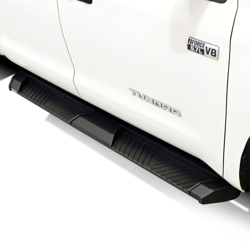 AT6 Running Boards are designed for full size trucks and feature a 5-inch wide step area with integrated indented pads for solid footing. Built with clean, rounded end caps and bracket covers for an OEM?style appearance, they offer a refined yet rugged look. Two finish options are available, textured black powder-coated extruded aluminum, backed by a 3?year limited warranty, or bright finish polished stainless steel with a limited lifetime warranty. These boards are lightweight but structurally durable, designed to minimize added weight with the strength for the toughest jobs. The footboard and pads are ergonomically placed for comfort and maximum traction. Bracket covers are used to conceal mounting hardware and help preserve that clean factory look. The AT6 models are vehicle-specific fit and include hardware to bolt on the boards with no drilling required. Installation takes about 1.5hrs, and depending on the height of the truck, should not require a lift. The aluminum construction offers excellent weather resistance with proper care and maintenance, but for harsh road conditions or regions where salt is used on the roadways during winter, choose stainless steel. Replace your factory running boards with AT6. They are a sleek, solidly built option with stylish design, ample stepping area, and finish choices for a custom look.
