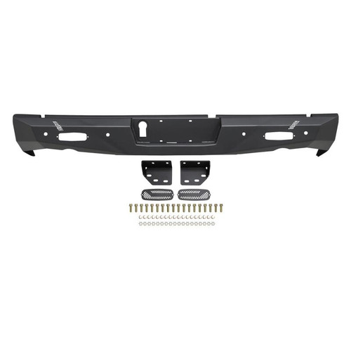 "High and Tight" best describes the great looking new Pro-Series Rear Bumpers from Westin. This all new "off road style" rear bumper features a light weight, slim, one-piece design, adding a modern, aggressive look to your truck. Built to improve ground clearance and departure angles when driving in more rugged terrain. The Pro-Series Rear Bumper is fully compatible for OEM parking sensors, hitch, and blind spot monitors. It also includes two LED license plate lights and can accommodate LED back up lights (sold separately). Featuring a textured black finish with an e-coated base coat, providing long lasting corrosion protection from the elements with easy bolt-on installation. Just add the original Pro-Mod Front Bumper, and your transformation from stock to custom is complete.