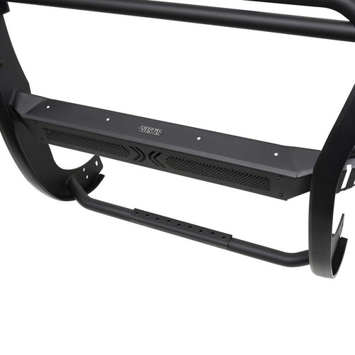 Westins Sportsman X Grille Guard effectively combines aggressive styling with heavy duty front end protection. Engineered to provide both great looks and performance, Sportsman Xs unique design compliments todays larger grille designs, and is available to fit most full and mid size truck applications. Sportsman X has an optional detachable mesh panel (sold separately) which is specifically designed to fit the opening in the center section of Sportsman X Grille Guard, or can be removed to accommodate the flush mounted 26in. dual row LED light bar (sold separately). A smaller removable mesh panel designed for the factory sensor location opening is included as standard with Sportsman X. For specific Chevy and Dodge/RAM applications a Sportsman X Sensor Kit (sold separately) is available. An exterior step plate is located on the 1-5/8in. bottom tube to provide easy access to the engine compartment. Built with heavy duty 2-1/4in. upright rubber strips and 1- 5/8in. outer tubes, Sportsman X Grille Guard is designed to provide protection and style for years to come.