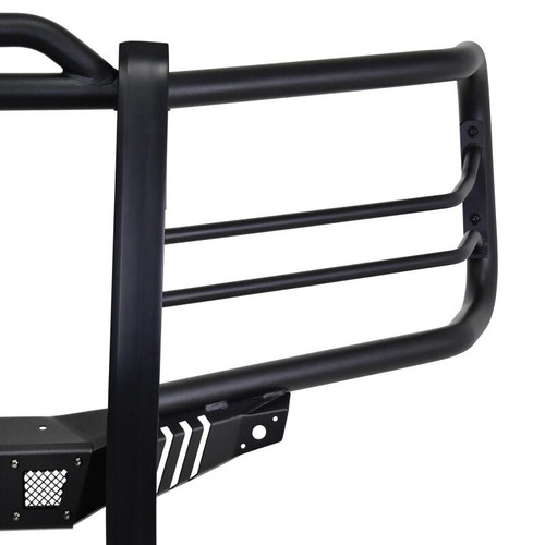 Westins Sportsman X Grille Guard effectively combines aggressive styling with heavy duty front end protection. Engineered to provide both great looks and performance, Sportsman Xs unique design compliments todays larger grille designs, and is available to fit most full and mid size truck applications. Sportsman X has an optional detachable mesh panel (sold separately) which is specifically designed to fit the opening in the center section of Sportsman X Grille Guard, or can be removed to accommodate the flush mounted 26in. dual row LED light bar (sold separately). A smaller removable mesh panel designed for the factory sensor location opening is included as standard with Sportsman X. For specific Chevy and Dodge/RAM applications a Sportsman X Sensor Kit (sold separately) is available. An exterior step plate is located on the 1-5/8in. bottom tube to provide easy access to the engine compartment. Built with heavy duty 2-1/4in. upright rubber strips and 1- 5/8in. outer tubes, Sportsman X Grille Guard is designed to provide protection and style for years to come.