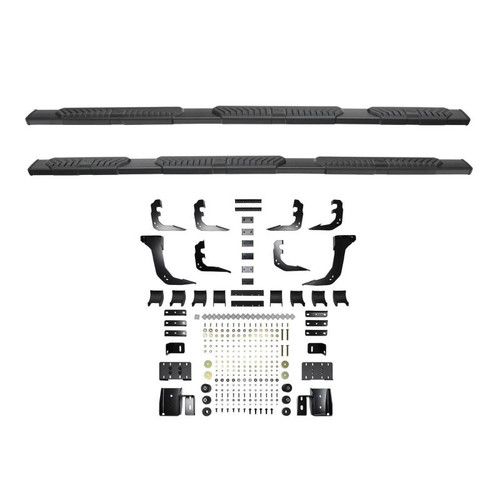 Get a boost, with Westins R5 M-Series Wheel-To-Wheel Nerf Step Bars. The extra wide 5in. footprint step design provides easier and safer vehicle access for both drivers and passengers. Developed and engineered in the USA, the R5 M-Series Wheel-to-Wheel Nerf Step Bars feature three oversized skid resistant step pads allowing easy access to the vehicle cab or truck bed cargo area. Built with high-grade and corrosion resistant steel designed to mount directly to your vehicles existing rocker panels. The modular design saves you money on shipping, as no truck freight costs are required. Also included are injection molded bracket covers for a clean and stylish look. Westins exclusive Isolator Bracket supports the step bar past the truck cab, a feature that competitors do not offer. Without an Isolator Bracket, the step area that extends past the vehicle is left unsupported. Westins unique design provides added bar support without resulting in annoying creaking sounds.